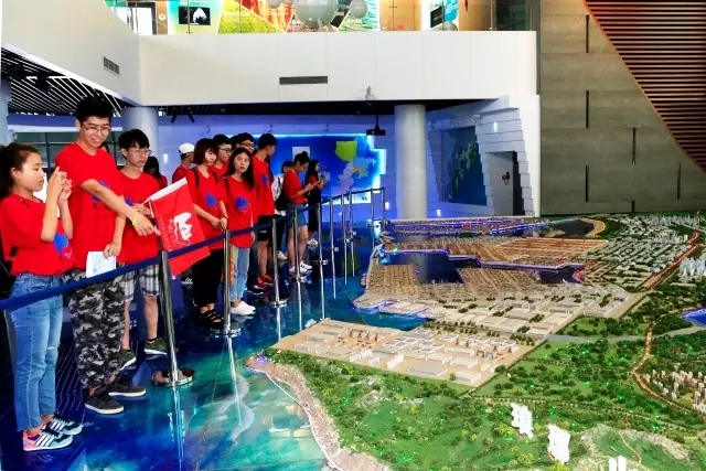 7月17日,海峡两岸大学生在山东青岛参观西海岸展览馆,了解西海岸经济社会发展。特别是万达影视基地、中德生态园、涵碧楼等人文景观和山水自然景观。台湾大学杨世铨了解到青岛西海岸的发展后,不禁感叹道“你们这里的确发展得很棒哎!”