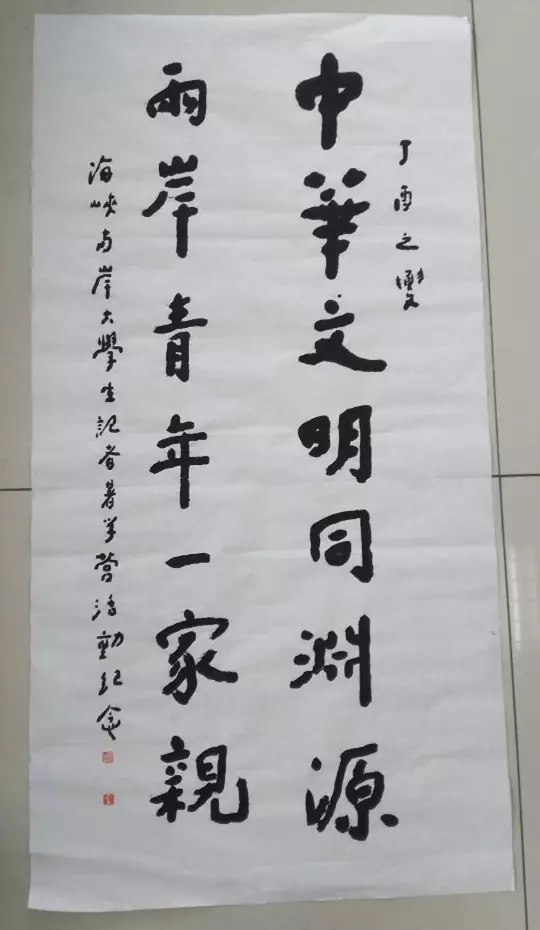 名家美术馆书法家黄飞还给海峡两岸大学生记者暑学营题字一幅。
