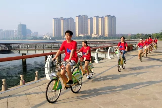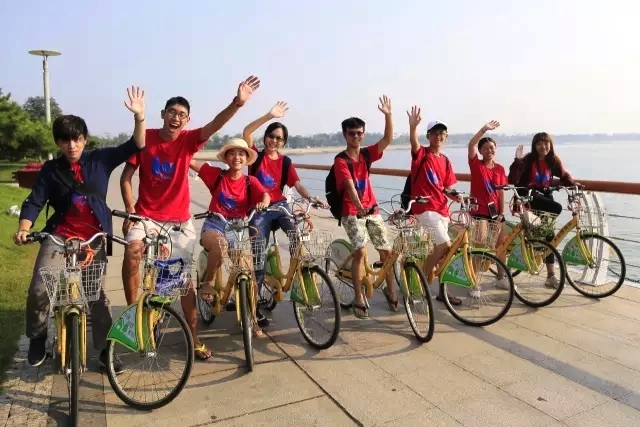 这是暑学营行程中体验“新四大发明”一项重要内容——体验共享单车。自2017年5月,来自“一带一路”沿线的20国青年评选出中国“新四大发明”以来,高铁、支付宝、共享单车和网购成了中国大陆的当代名片,台湾学生们也在这次旅程中亲身体验了支付宝、共享单车和网购。