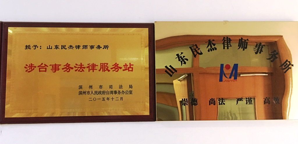 2015年, 滨州市台办联合滨州市司法局出台了《关于设立“滨州市涉台事务法律服务站”的意见》,决定作为“法律服务站”的试点,先期设立在山东民杰律师事务所,后续根据试点效果及服务需求大小,逐步在全市公、检、法等各部门设立多个站点。该“法律服务站”通过向台胞台商台企台属提供法律咨询,开展法律宣传,担任法律顾问,代理各类案件,办理涉台公证,为台资企业维权提供法律保障,帮助台资企业建立经营风险预测预警机制,在促进台资企业健康快速发展,进一步优化对台法律服务环境发挥了重要作用。