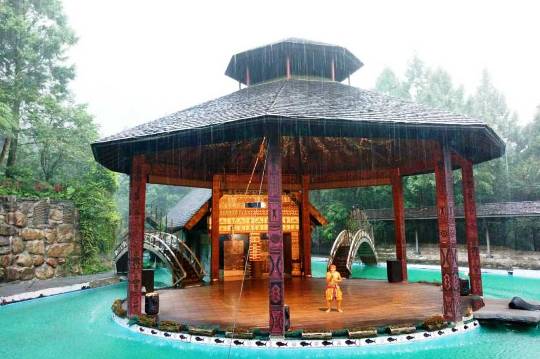 雨也渐渐大了,可是我们依旧闲庭信步,且行且止,因为沿途有台湾原住民的村落与静态展区,求知欲旺盛的我们不会放弃任何一次猎奇的机会,在雨中,山气愈加浓厚,而山中的林木在雨的淋洗下愈发滴翠漏青,山花愈发粉黛奇妍。空山新雨中,聆听原住民古老的音乐,观赏山中胜景,我发觉我竟然找不到文字来评述,不觉惋惜,只能将这种美留在心间,成为自己定义美的又一个模版。