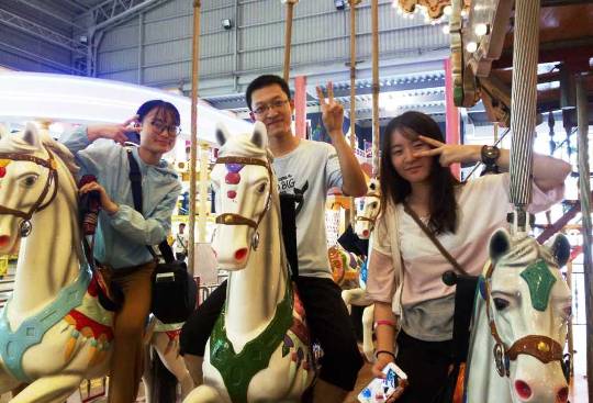 两个小时后,饥肠辘辘的我们终于来到了此行的目的地――日月潭景区,享用过丰盛的午餐后,我们重整行囊,向山顶挺进。此时已有小雨淅淅沥沥,但这丝毫不影响我们对于未知的向往,撑起雨伞,缓步前行……在登山之前,我们来到了游乐场,这里有各种惊险刺激的娱乐项目,我们怎么能就此错过,于是,我与同行的五位老师与学伴,开启了我们的探险之旅……尖叫声,欢笑声此起彼伏。玩的人心惊胆颤,血脉喷张;看的人前俯后仰,笑成一片。