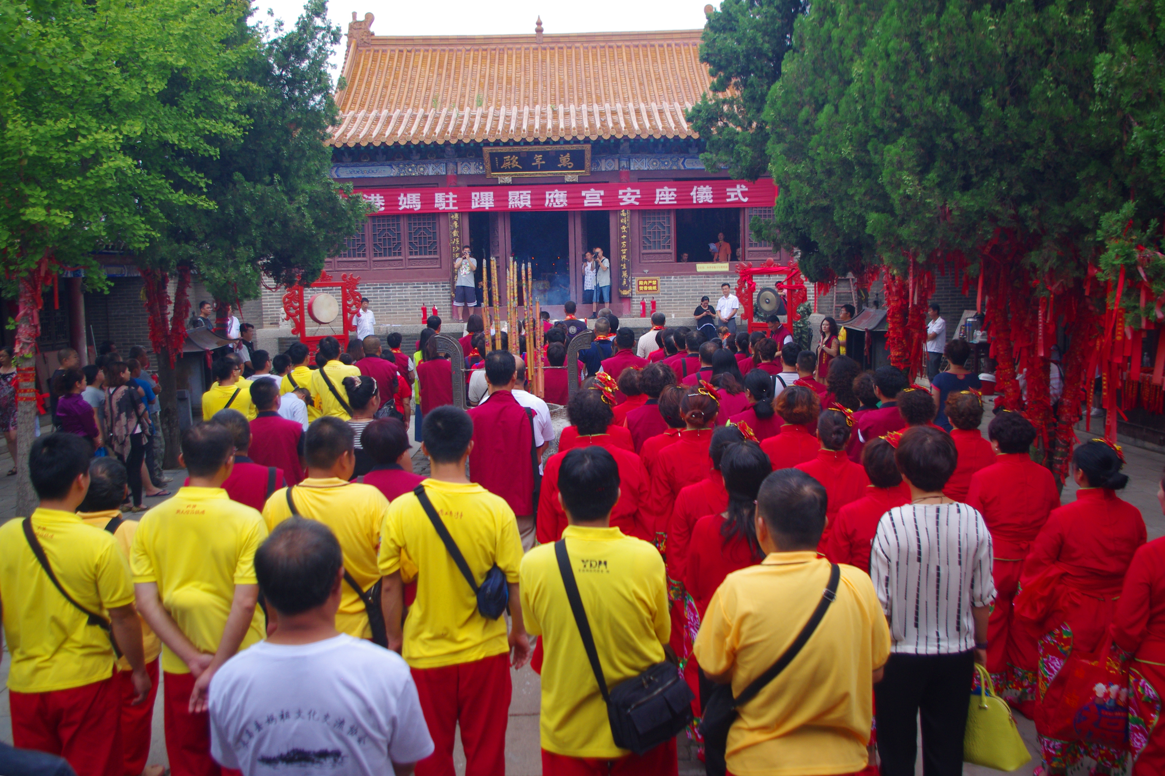 29日上午,在隆隆的鞭炮声中,显应宫迎来了北港朝天宫、闽南朝天宫走亲团,欢迎仪式以舞傩、舞狮、秧鼓开始,由显应宫道长主持法会迎请妈祖过香安座,随后长岛县妈祖文化交流协会与走亲团举行了北港妈祖驻跸显应宫安座仪式。