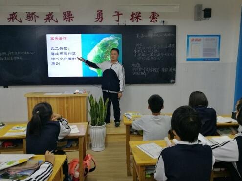 9月28日,在淄博市周村二中初二(2)班的教室里,一场精彩纷呈的演讲比赛正在进行,同学们以《我与台湾》为主题,在讲台上声情并茂地讲述着对宝岛台湾的认识和了解,抒发着对宝岛台湾的情感。同学们饱满的激情和爱国热情深深地打动了老师和同学,赢得了一阵又一阵的掌声……