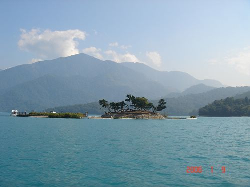 与阿里山一样,日月潭对大陆的游客也有着天然的吸引力。上午,旅游团一行在日月潭上乘游艇沐浴2009年的第一缕阳光,尽兴观赏湖光山色,度过了一个难忘的元旦。日月潭如同镶嵌在群山之间的一颗湛蓝的明珠,青山碧水交融、蓝天白云相伴,轻纱般的薄雾围绕,将这里装点成一幅美丽的水墨山水画,令游客们陶醉其间,流连忘返。日月潭是两岸同胞共同的骄傲,据说早在清代时期,就入围中国十大名胜景观之列。一些游客表示,在上小学时,教科书上的宝岛台湾、日月潭的美丽风光就令他们神往,并为两岸共同的瑰丽灿烂的中华文化感到自豪。