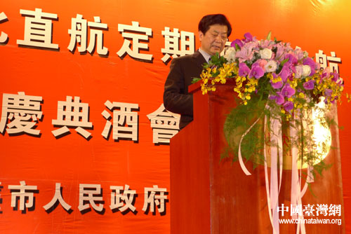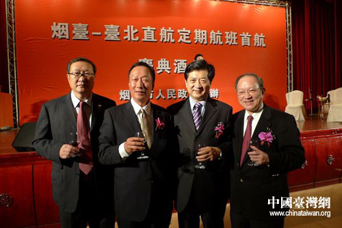 中国国民党副主席林丰正、鸿海集团董事长郭台铭在致辞中表示,近年来烟台经济社会发展取得了令人瞩目的成就,相信通过各个方面的共同努力,直航线路一定能使两地同胞感情更融洽、交流更频繁、合作更广泛,为两岸经济社会发展和繁荣做出新的贡献。