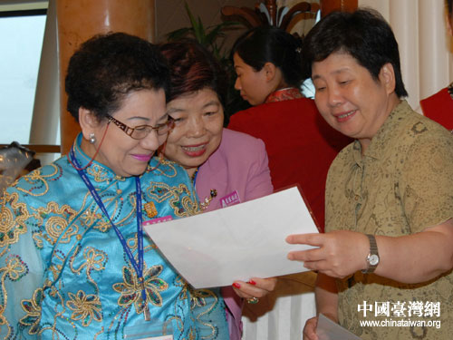 晚宴结束前,宾主双方互赠礼品。洪玉绣还代表中华工商妇女企业管理协会向上海市台联奖学金基金进行了捐赠。