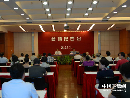 中国台湾网8月2日上海消息 7月31日下午,民主党派大厦六楼报告厅内座无虚席,上海国际问题研究院台港澳研究所所长严安林应上海市台联邀请,为在沪台胞做了关于近期两岸关系发展的台情报告。上海市台联会长林明月出席报告会,报告会由上海市台联副会长甘平主持,八十余位台胞认真聆听了报告。