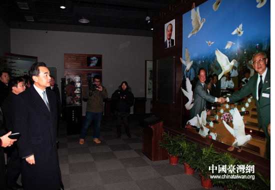 中国台湾网12月24日上海消息 24日上午,中共中央台办主任王毅参观了上海福寿园人文纪念博物馆,并在展示汪老事迹与汪辜会谈情景的汪道涵纪念墙前驻足。 (中国台湾网 田云鹏 摄)