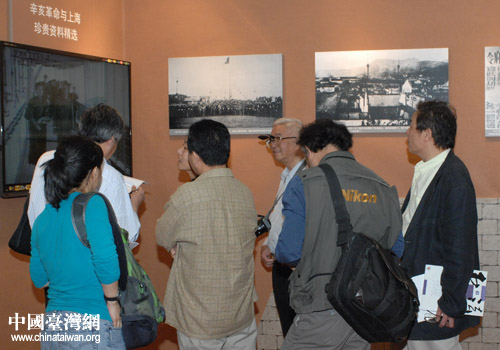 与会嘉宾参观辛亥革命文献文物展(图片来源:上海市台办)