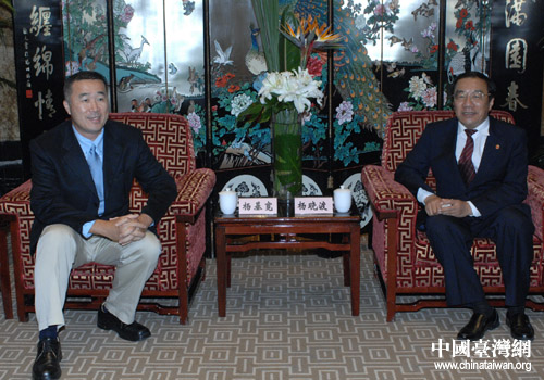 中共上海市委常委杨晓渡会见出席论坛的台湾104人力银行董事长杨基宽先生。(上海市台办 葛凤章 摄)