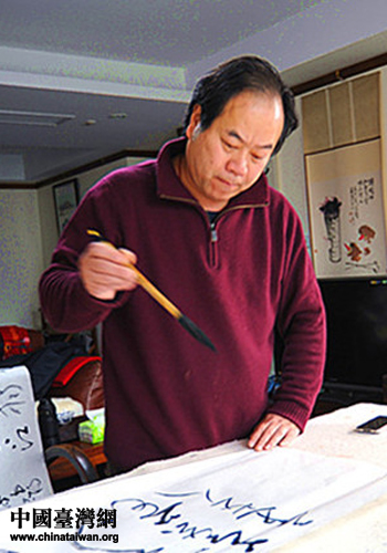 丁申阳在创作书法作品。(上海市台办 常志康 摄)