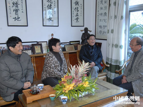 上海市台办主任李文辉(右二)、副主任瞿国樑(左一)慰问台商李广仁夫妇及家人。图片来源:上海台办