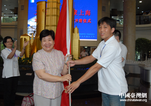 台联会长林明月向营员代表授旗。(上海市台联 朱征宇 摄)