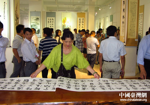 中国台湾网9月28日江苏海安消息 9月27日至30日,曾在两岸引起强烈反响的首届“中华情·两岸缘”台商台胞书画展在江苏省海安县国家级“5-23”文化产业主题公园举行巡展。这次书画展由中国华艺广播公司华广网、上海市台湾同胞投资企业协会和台湾中华新世代艺术文化交流协会共同主办,今年6月底在上海进行了首次展出。
