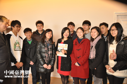 上海台商子女学校的领导13日正在与获得三标的部分台湾藉同学在一起。(上海台协 玉龙 摄)