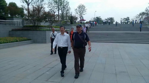 座谈开始前,市台联党组书记季平陪同台湾客人赴淞沪会战纪念地瞻仰