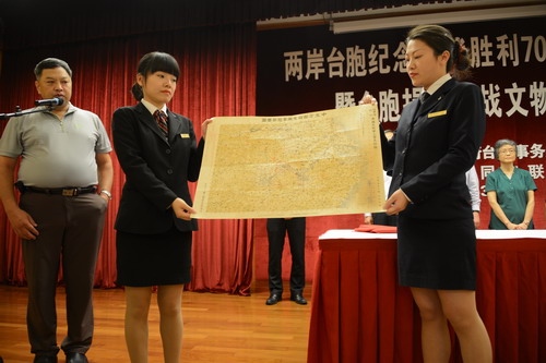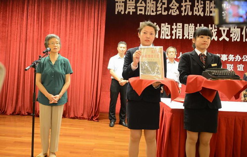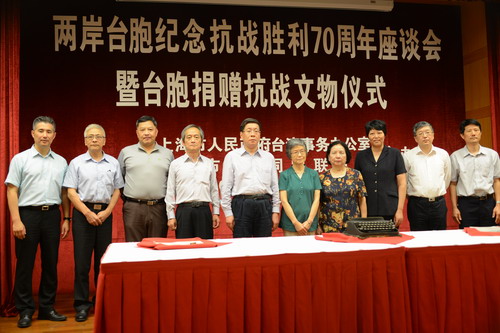 两岸台胞座谈纪念抗战胜利70周年台胞捐赠抗战文物仪式同时举行