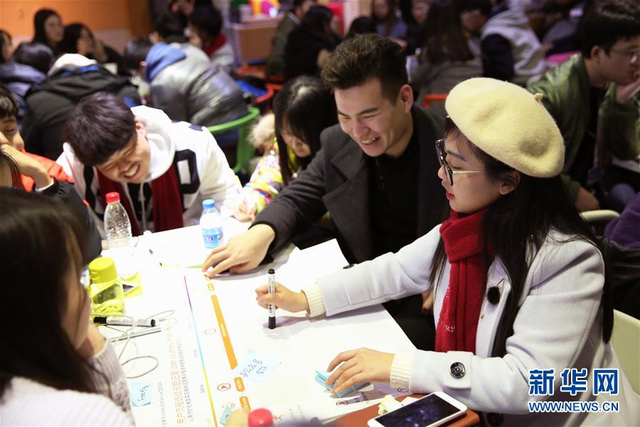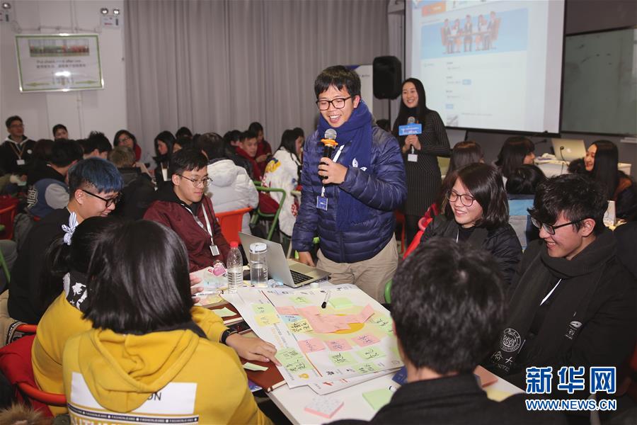 1月6日,在上海同济大学,参加研习营的学生在工作坊活动中讨论小组项目。当日,第二期同济大学-紫荆谷创新创业研习营在同济大学启动。本届研习营吸引来自海峡两岸及香港澳门高校的70余名学子参加。