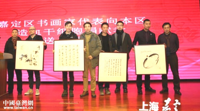 中国台湾网1月18日上海讯 上海市嘉定区2018年“万人帮万家”红十字迎春帮困活动暨嘉定区书画家艺术作品义捐义卖活动在南翔智地党群服务站举行,上海市红十字会党组书记、常务副会长张浩亮,嘉定区副区长、区红十字会会长王浩、区红十字会常务副会长王国忠、南翔镇镇长吴雪芬及书画家代表出席了活动。