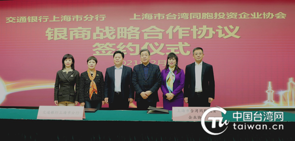 中国台湾网2月3日讯 2月2日下午,交通银行上海市分行与上海市台协银商交流会暨银商战略合作签约仪式在交通银行上海市分行举行。上海市台办主任李文辉,交通银行上海市分行党委书记、行长徐斌,上海市台协会长张简珍,交通银行上海市分行党委委员、副行长陈伟芳,交通银行长三角一体化管理总部副总裁董怡蓓等领导、嘉宾出席签约仪式。