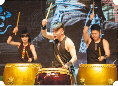 近日,首届鼓舞东方鼓乐节在上海开幕。活动期间,市民可以在怡丰城的屋顶花园等场所免费欣赏中国、新加坡、埃塞俄比亚等海内外的演出团体带来的鼓乐表演,乐享端午假期。图为台湾御鼓坊的演员在鼓乐节上表演。