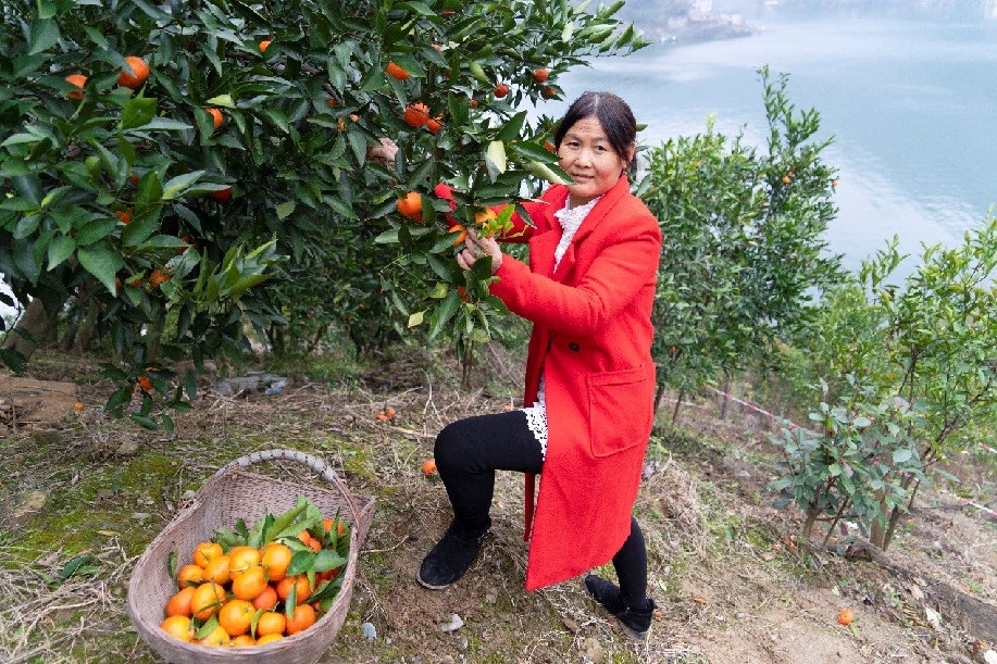 岚皋县大道河镇月池台村村民黄天芝在橘园采摘柑橘。赵华斌摄