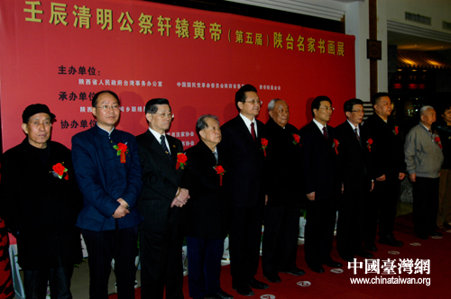 中国台湾网4月4日西安消息 4月3日,壬辰年清明公祭轩辕黄帝海峡两岸书画展在西安隆重开幕。陕西省政协主席马中平,省委原书记、省政协原主席安启元,省政协副主席、黄帝陵基金会理事长王晓安,省政协副主席、民革陕西省委主委李晓东及陕台两地书画界知名人士出席活动。陕西省台办主任严超英主持活动。