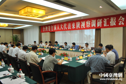 中国台湾网9月7日西安消息 根据全国人大常委会办公厅安排,台湾省十一届全国人大代表日前到陕西省进行视察调研。在调研汇报座谈会上,代表们听取了关于陕西省经济社会发展和承接台商产业转移等方面情况介绍。全国人大常委会副秘书长何晔晖,全国台联会长、视察调研团团长梁国扬及其他代表出席。陕西省人大常委会副主任黄玮主持,陕西省副省长郑小明作汇报。
