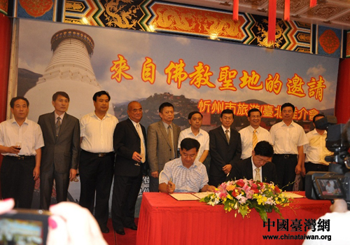 推介活动仪式上,忻州市旅游局负责人和台湾旅游业经理人协会理事长分别代表双方签署了旅游战略合作协议,双方将本着互惠互利、合作双赢的原则,互相引进、共同发展。(中国台湾网、忻州市台办联合报道)