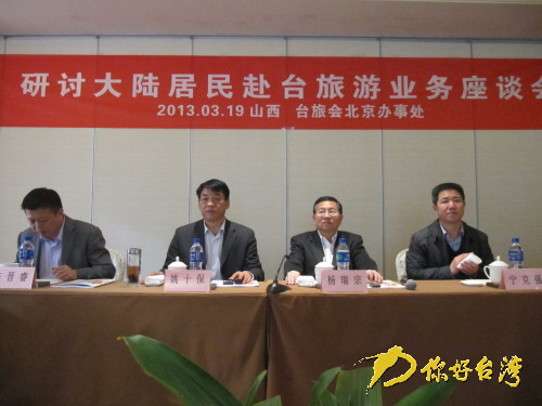 你好台湾网3月19日消息 (记者 盛志耘) 今天(19日)台旅会北京办事处主任杨瑞宗专程前往山西,邀请山西省旅游协会、太原市旅游协会及旅行社等业界代表,在太原举办“大陆居民赴台旅游业务座谈会”,中华两岸旅行协会理事长许晋睿及远东航空公司代表邓荣文也参与会议,一起为山西居民提供最新的台湾旅游信息,为山西居民赴台旅游热度加温。