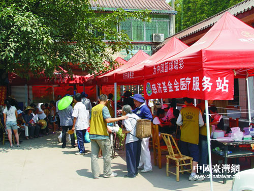 搭建在地震灾区的慈济基金会医疗服务站。图片来源:德阳市台办