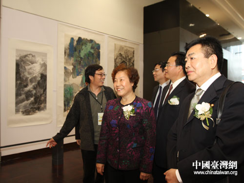 观赏书画展。图片来源:四川省台办 四川省诗书画院现代诗书画艺术展台北展场。图片来源:四川省台办 浏览更多各地涉台新闻