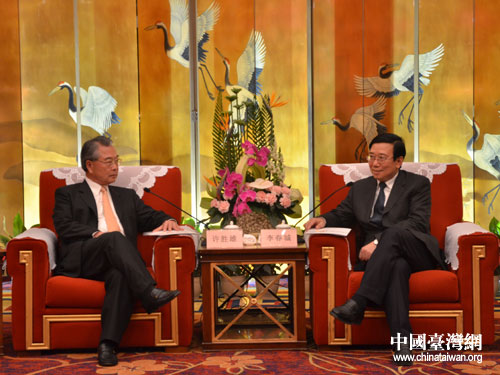中国台湾网4月14日成都消息 日前,以海峡两岸经贸文化交流协会会长、财团法人海峡交流基金会副董事长、台湾金仁宝集团董事长许胜雄先生为团长的海峡两岸经贸文化交流协会参访团一行参访了成都。4月13日,中共四川省委常委、成都市委书记李春城,成都市长葛红林在成都会见了参访团全体成员。双方就蓉台电子信息产业发展的最新情况、仁宝成都项目建设进展情况等广泛交换了意见。