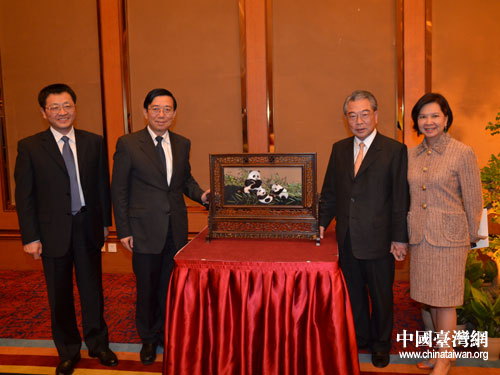 中共四川省委常委、成都市委书记李春城(左二),成都市长葛红林(左一)与许胜雄夫妇。图片来源:成都市台办