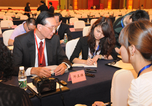 邱正雄接受记者采访。(摄影 四川省台办李华军)