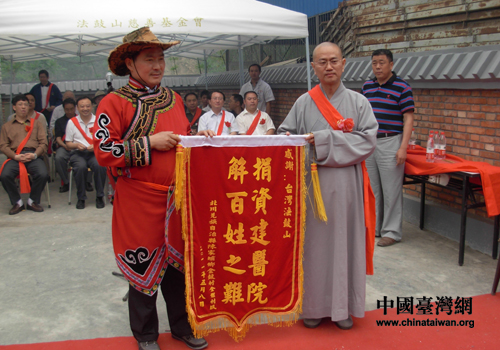 中国台湾网5月9日北川消息 5月8日,由台湾法鼓山慈善基金会捐建的北川羌族自治县陈家坝乡金鼓村门诊部峻工启用仪式隆重举行,四川省、绵阳市有关部门领导出席了落成启用仪式。