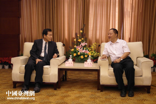 张世虎(右)会见王端正(左)。(图片来源:绵阳市台办)