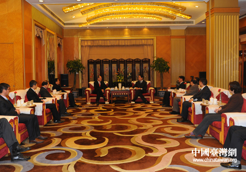 四川省副省长甘霖(右)在成都会见台泥集团董事长辜成允(左)。(图片来源:四川省台办)