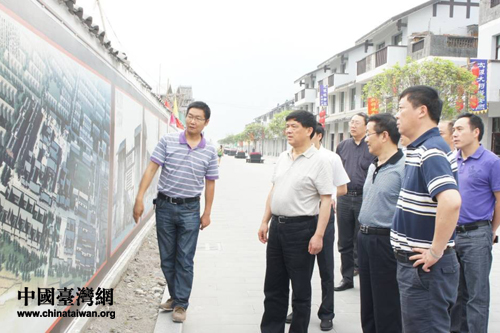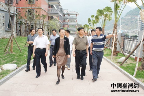 四川省台办主任刘俊杰在雅安市石棉县考察灾后重建项目安顺场新场镇。(图片来源:四川省台办)