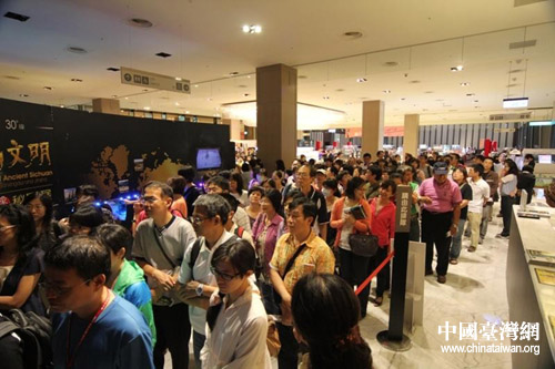开展前,观众人潮如织,排起了长龙。(图片来源:四川省台办)
