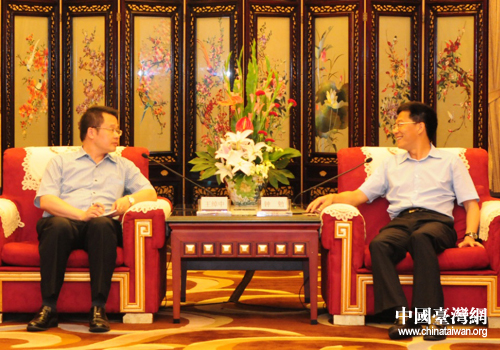 四川省委常委、副省长钟勉会见率团来川采访的台湾《旺报》总编辑王绰中一行。(图片来源:四川省台办)