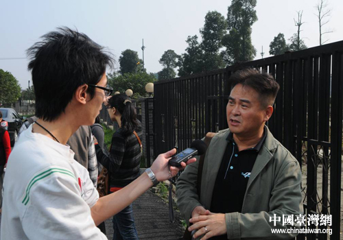《两岸爱心地图》采访组在都江堰“台湾爱心家园”采访成都台商协会常务副会长唐中柱。(图片来源:四川省台办)