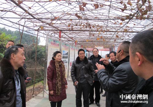 四川省台办组织扶贫点镇村干部一行赴成都参观学习,图为省台办巡视员杨永培率考察组一行在双流县永安镇参观考察红提种植。(图片来源:四川省台办)