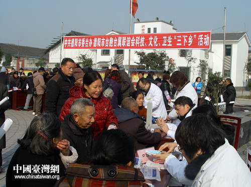中国台湾网1月24日德阳消息 1月22日,四川省德阳市台办组织党员干部、市台胞台属联谊会常务理事和台属知名医生、画家近20余人,到德阳市台办结对帮扶的什邡市师古镇师古村开展送科学技术、文化知识、医药卫生的“三下乡”活动,德阳和什邡市台办、台联会以及师古镇、村相关负责人和数百名村民参加了活动。