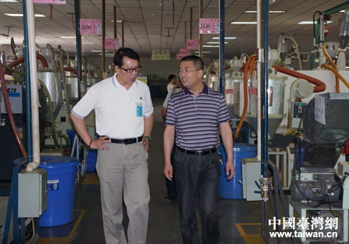 林永成深入车间生产一线视察。(德阳市台办 尹显斌 摄)