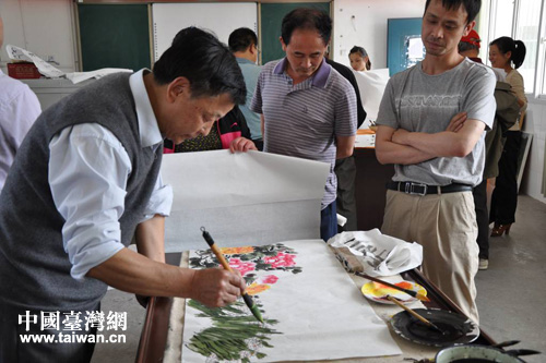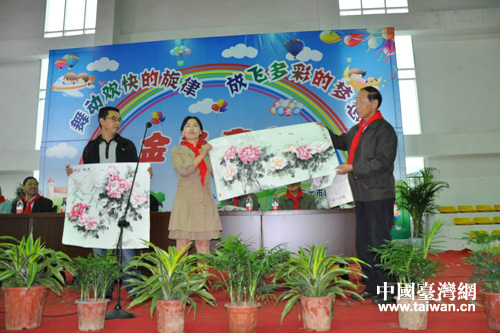 中国台湾网6月14日广元消息 四川省广元市台办结合“实现伟大中国梦、建设美丽繁荣和谐四川”主题教育活动,在六一儿童节之际,组织台属书画家7人到昭化区实验小学,为该校700余名师生送去书画作品50余幅,著作10本,并与老师同学进行互动交流,谈理想、讲修养、学技法、习书画,书画家们现场为老师同学作书画100余幅,为实现伟大中国梦铸造了强大精神动力。