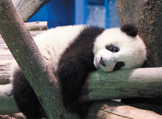 赠台大熊猫幼仔今见客 “是个四川壮妹”(图)