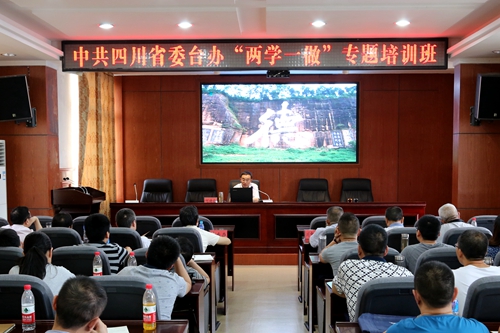 四川省台办主任周敏谦主持学习教育动员大会并讲党课。