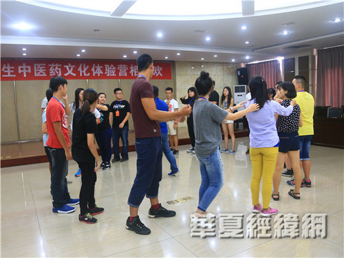“发现中药‘川字号’”川台学生相见欢活动在四川省台办7楼大会议室举行。图为川台学生进行活动前的热身运动。